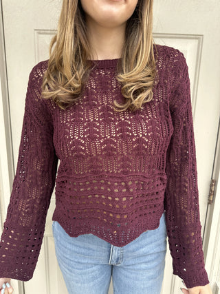 Dex Scallop Hem Crochet Sweater Burnt Orange