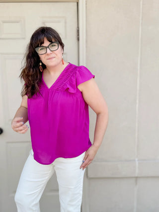 DEX Washed Plum Button Front Linen Drawstring Shorts
