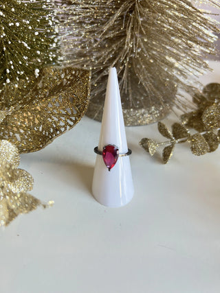 Kara Gold Plated Brass Pear Cut Ring Ruby CZ