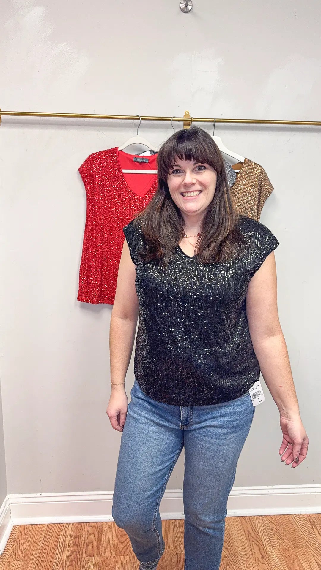 If you’ve ever side-eyed sparkly tops because they feel a little… “costume-y,” meet your new go-to: the black sequin top that’s classic, confidence-boosting, and shockingly comfy. This is a real top you’ll wear way beyond one party—aka the most wearable (and least intimidating) of our holiday tops.