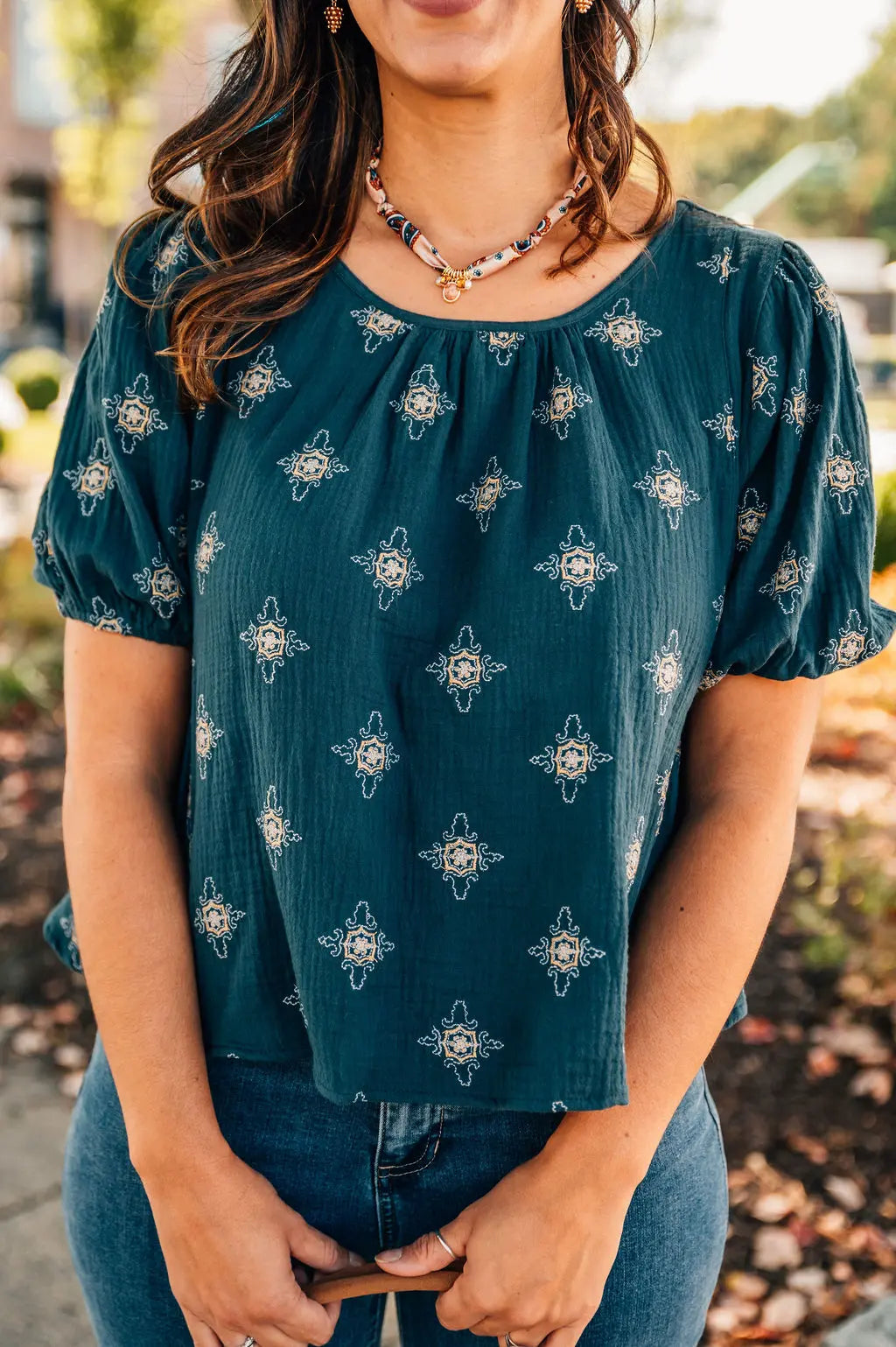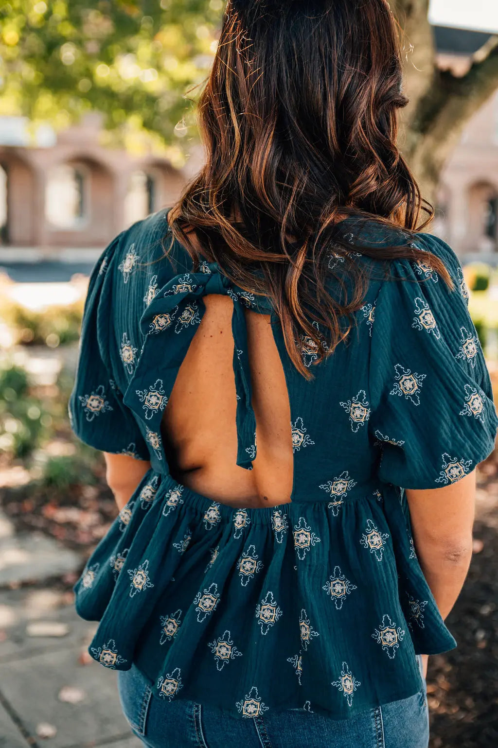 Tired of basic blouses that lack personality? This charming Winter Spruce tie back embroidered top is the perfect solution for adding instant, confident style to your wardrobe! The delightful details eliminate the stress of finding pieces that are both comfortable and chic. You will feel instantly beautiful and effortlessly stylish wearing this unique 100% cotton top that works for any casual outing, lunch date, or even a relaxed workday.